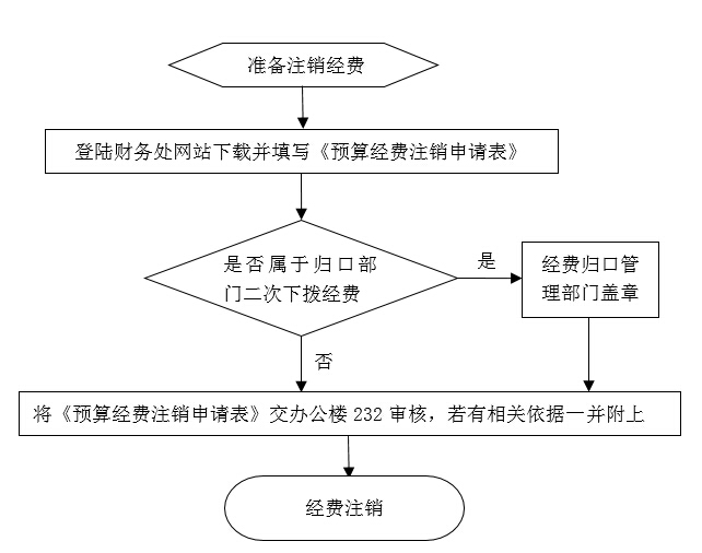 1.经办人登陆财务处网站,在“下载服务”栏目下载《预算经费注销申请表》,签字并加盖公章;