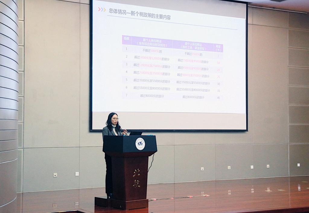 许菁处长对新发布的一系列个人所得税政策进行了解读。介绍了新个税法的四大亮点:如首次实行综合征税;免征额由每月3500元提高至每月5000元(每年6万元);首次增加六项专项附加扣除;优化调整税率结构,扩大低档税率级距等等。对大家最为关心的子女教育、继续教育、大病医疗、住房贷款利息或者住房租金、赡养老人六项专项附加扣除从政策和具体操作两个方面均进行了详细的讲解和解读,对于每一项专项附加扣除的享受条件、标准方式、起止时间和备查资料均做了说明。同时也对国家税务总局发布的“个人所得税”APP和网页端的操作流程进行了演示介绍。